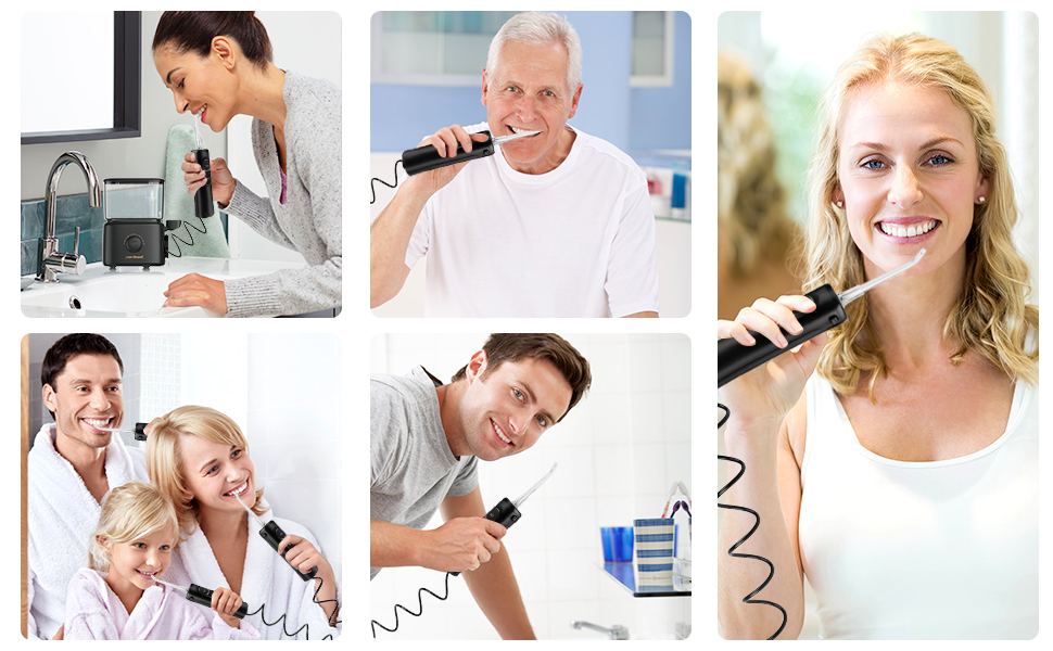 The zerhunt water flosser is equipped with 3 color-coded classic nozzles and 4 functional tips for using by different family members. Improving the dental problems of the whole family together.